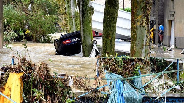 Heftiger regen hat im süden frankreichs am montag verheerende überschwemmungen.